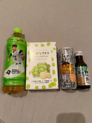 ドリンクとマスカットのおもち頂いたよ![]()